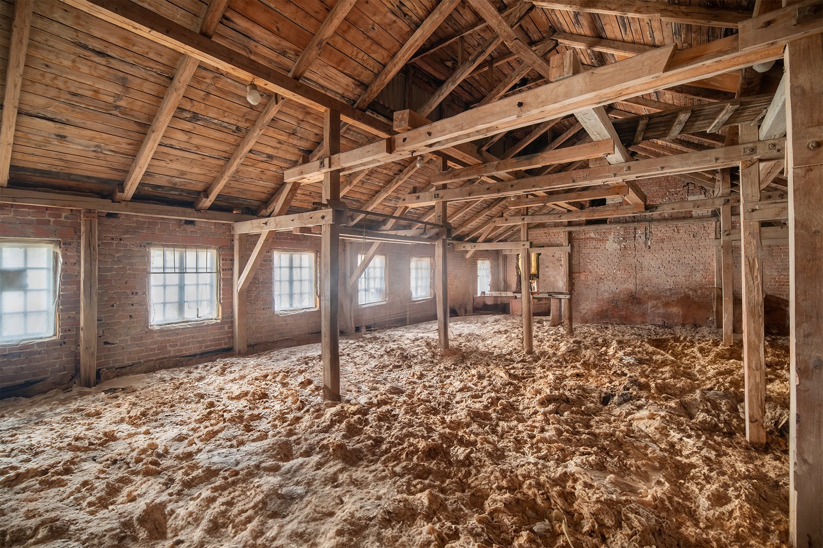 - Posadzki: jastrych betonowy, częściowo wykończony litymi deskami podłogowymi