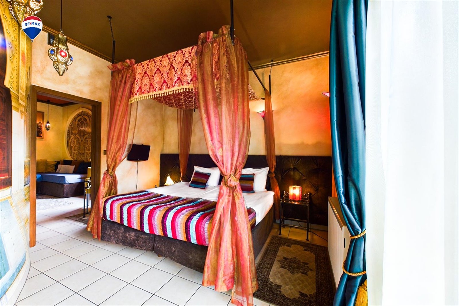 Willa to wyjątkowy budynek o powierzchni użytkowej 612,37 m² zbudowany w 2008 roku, w tradycyjnej technologii, co gwarantuje solidność i trwałość konstrukcji. Dobudowana na parterze w 2015 roku restauracja, sprawia, że obiekt oferuje kompleksowe rozwiązania dla potencjalnych klientów biznesowych. Obiekt dysponuje 9-cioma ekskluzywnie zaaranżowanymi pokojami z łazienkami, inspirowanymi różnymi kulturami świata. Każdy z nich został zaprojektowany z dbałością o oryginalne detale charakterystyczne dla danego miejsca, zapewniając niepowtarzalny klimat. Część pokoi dysponuje także antresolą i klimatyzacją. Łącznie miejsce to dysponuje ok. 40 miejscami noclegowymi. Dodatkowo, w budynku mamy jeszcze 4 pokoje z możliwością adaptacji np. na pokoje hotelowe, z czego 2 dzisiaj pełnią funkcję pracowniczą i 2 pokoje są w stanie niewykończonym. Ta możliwość może stworzyć łącznie aż 13 pokoi.