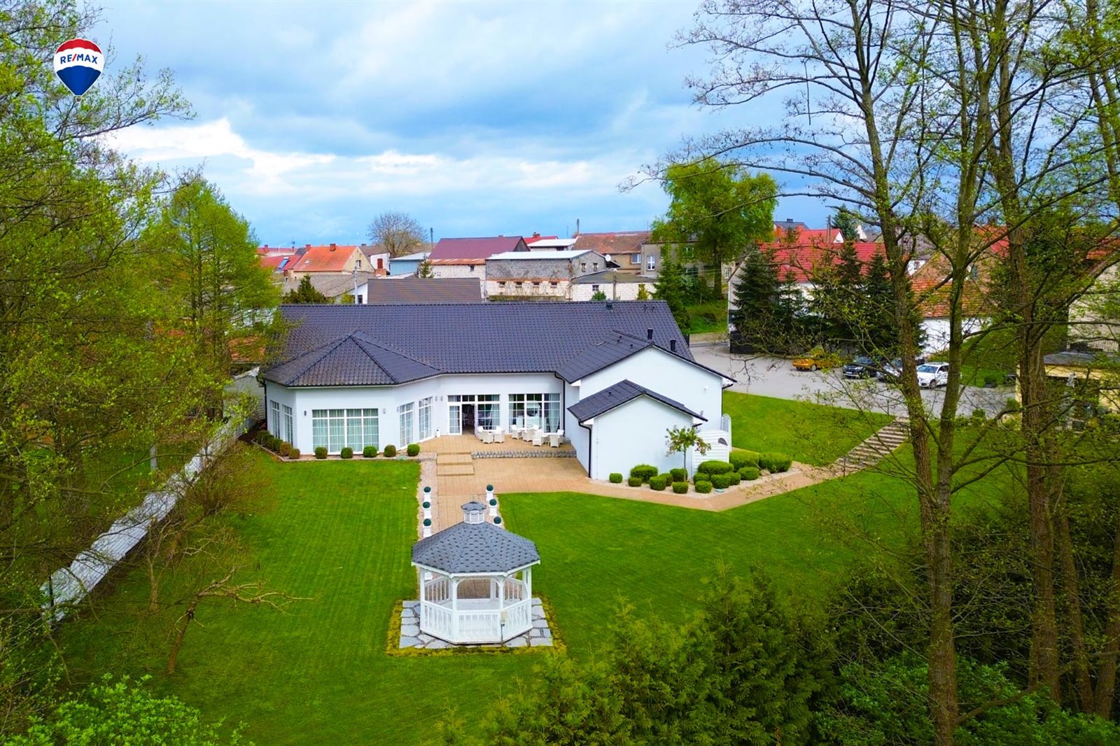 Sala bankietowa z zapleczem, to budynek parterowy o łącznej powierzchni użytkowej 481,52 m², zbudowany w 2012 roku w technologii tradycyjnej, co zapewnia solidność i trwałość konstrukcji. Wyposażona sala, przygotowana dla 160 gości, oferuje komfortowe warunki dla organizacji różnorodnych wydarzeń biznesowych i uroczystości. W pełni urządzona i umeblowana sala bankietowa posiada doskonałe nagłośnienie oraz stylizowane lampy, co tworzy odpowiednią atmosferę na każdą okazję. Z sali można wyjść na dwa tarasy o łącznej powierzchni 45,64 m², prowadzące do urokliwej altanki pokrytej gontem, idealnej na spotkania na świeżym powietrzu. Ogród otaczający budynek został starannie zaprojektowany i jest bardzo zadbany, z licznymi nasadzeniami i pięknie wypielęgnowanym trawnikiem, co dodaje uroku temu miejscu i zapewnia relaksującą atmosferę dla wszystkich gości i uczestników wszelkich wydarzeń.