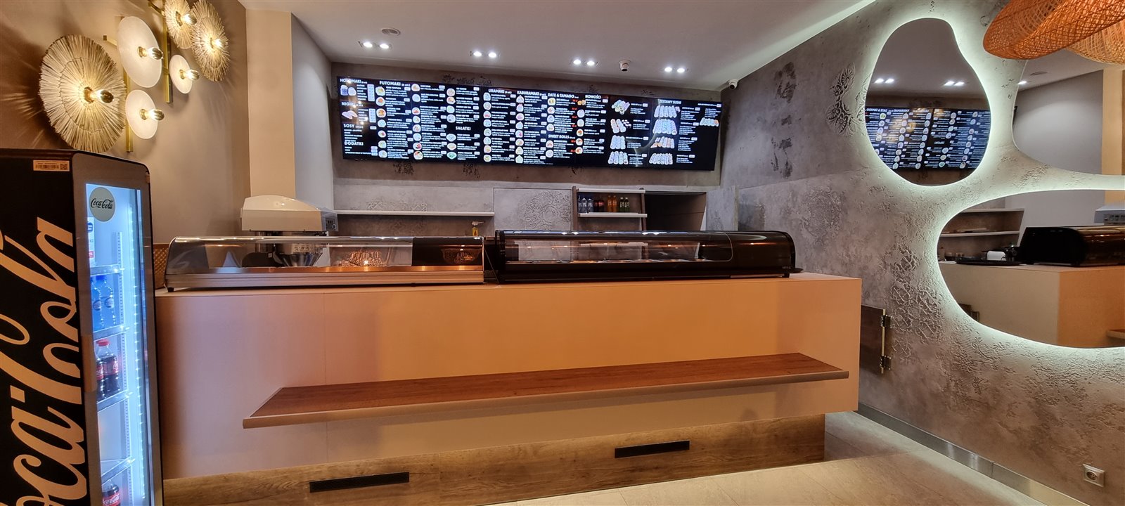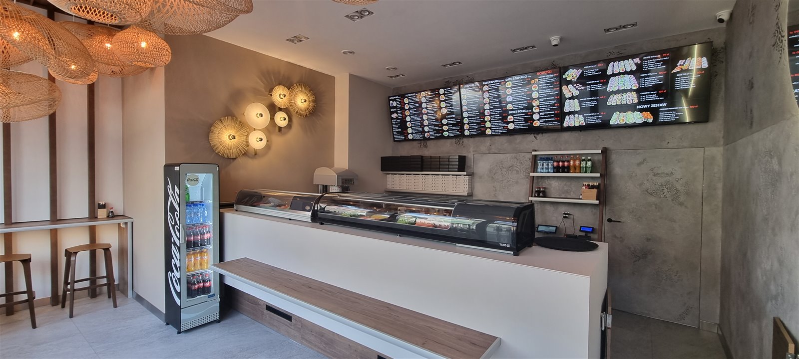 Wynajmę kompletnie urządzony lokal gastronomiczny ze wszystkimi pozwoleniami Sanepidu. Atrakcyjna lokalizacja na parterze z dużymi przeszklonymi oknami i wejściem z ulicy. W budynku inne punkty usługowe. Powierzchnia 45,6 m2 ( sala, kuchnia, szatnia, toaleta) oraz dodatkowe pomieszczenie piętro niżej o pow.12,3 m2. Lokal wyposażony w internet, klimatyzację, monitoring, alarm, zasilanie trójfazowe, zmiękczacz wody oraz osmozę, na kuchni okap wyciągowy. Stoły chłodnicze oraz zamrażarki firmy Ascoblock 2 letnie. Ponadto zainstalowane są 3 monitory 65 cali z wyświetlanym menu które można dowolnie zmieniać. Całość bardzo zadbana. Istnieje również możliwość odsprzedaży całego wyposażenia.Dodatkowe opłaty ogrzewanie według rozliczenia przez administratora ( niewielkie), woda zimna i ciepła według wskazań licznika. Śmiecie osobna umowa.Działalność można zacząć praktycznie od zaraz bez nakładów z wyłączeniem profilu sushi. Szczegóły przedstawię telefonicznie lub po uprzednim umówieniu się osobiście.