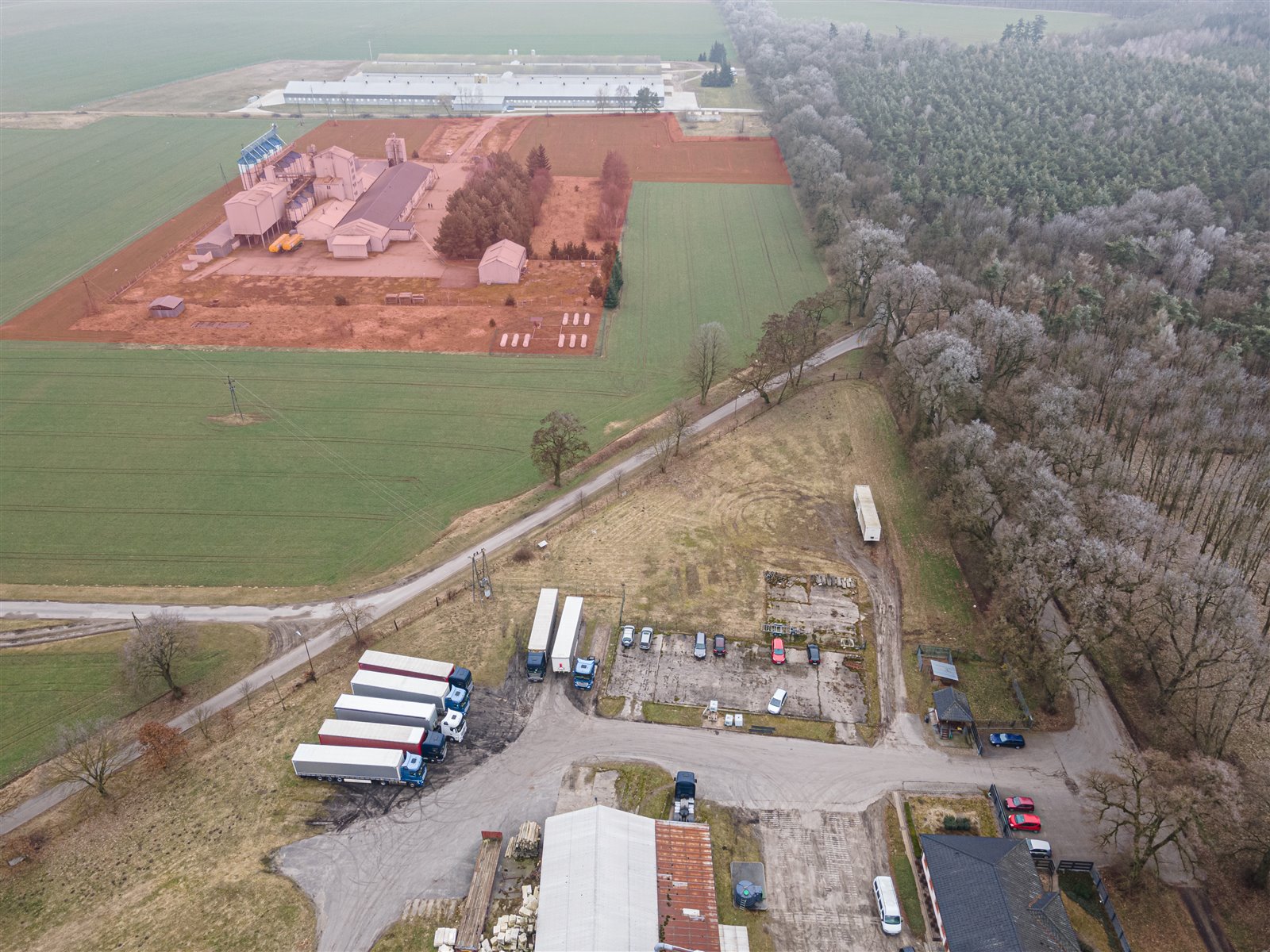 The total area of the buildings is 3,244 m2. The buildings were built in the 1970s and modernized around 2006. The production tower building was built in 2006. The total area of hardened surfaces with concrete blocks (access roads, maneuvering areas) is approximately 6,300 m2. The currently non-built-up area is used for agricultural cultivation.